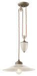Barva: kremno bela, starana medenina. Kolekcija svetilk združuje barvno keramiko in starinsko medenino, kar je njen osnovni estetski podpis. Širok svetlobni snop ustvarja toplo in prijetno vzdušje v kateremkoli prostoru, kjer je svetilka nameščena, in prostor hkrati vizualno obogati.