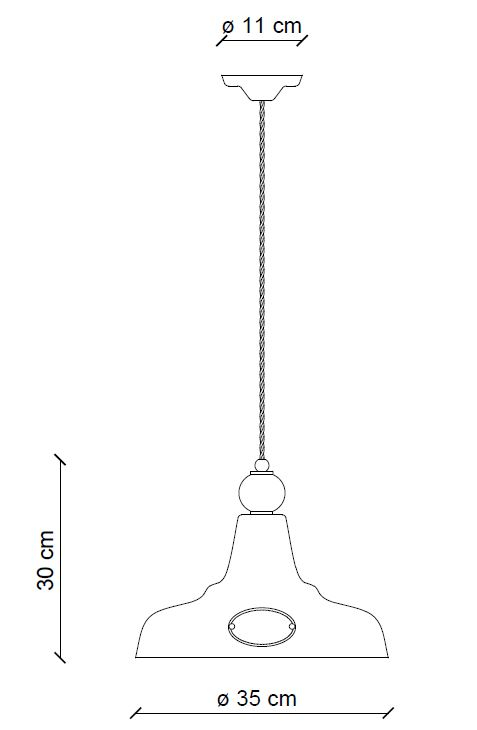Barva: zarjavela kovina, vintage bela. Svetilka združuje mat kovino v videzu rje in detajle s craquelé učinkom, kar ustvarja harmonično ravnovesje med polnimi in odprtimi oblikami. Širok senčnik in mehanizem za nastavitev višine (gor–dol) omogočata prilagajanje svetlosti, še posebej v rustikalno zasnovanih prostorih. Navdih črpa iz ameriškega rustikalnega sloga, zaznamujejo pa ga nežni, rahlo zbledeli odtenki in patinirani zaključki, ki svetilki dajejo preprost, brezčasen značaj. Oddaja čisto, neposredno svetlobo, brez zaslona, kar poudarja njeno pristnost in funkcionalnost. Uporaba materialov, kot sta kovina in keramika, obuja občutek preteklosti, medtem ko minimalistične in preproste oblike dokazujejo, da so prav najbolj preproste forme pogosto najbolj očarljive.