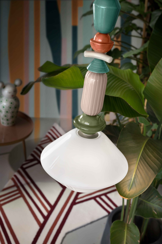 Viseča svetilka Lariat znamke Ferroluce je odličen primer italijanske obrti. Ferroluce je družinsko podjetje, ki ponuja ročno izdelana keramična svetila. Svetilka je odlična za dodajanje dinamičnega pridiha sloga in osvetlitve vsakemu prostoru. Z brezčasnimi geometrijskimi poudarki in različnimi barvnimi možnostmi bo viseča svetilka Lariat zagotovo poživila vsako notranjost. Svetilka izvira iz Italian Deco kolekcije, ki spominja na ikonične, minimalistične oblike, ki opredeljujejo obdobje preprostega navdiha. Te oblike so sveža serija dizajnov, na voljo v vzorcih in barvah, ki dajejo osebnost in prisotnost. Kot dragulj so svetli keramični elementi razporejeni v navpični vrsti in tvorijo raznoliko in barvito verigo. Ta veriga se nadaljuje z izmeničnimi geometrijami, dokler ne doseže osrednjega elementa, ki vsebuje svetlobni element - stekleni difuzor v mlečno beli barvi. Serija svetilk Lariat so na voljo v različnih višinah in barvnih kombinacijah.