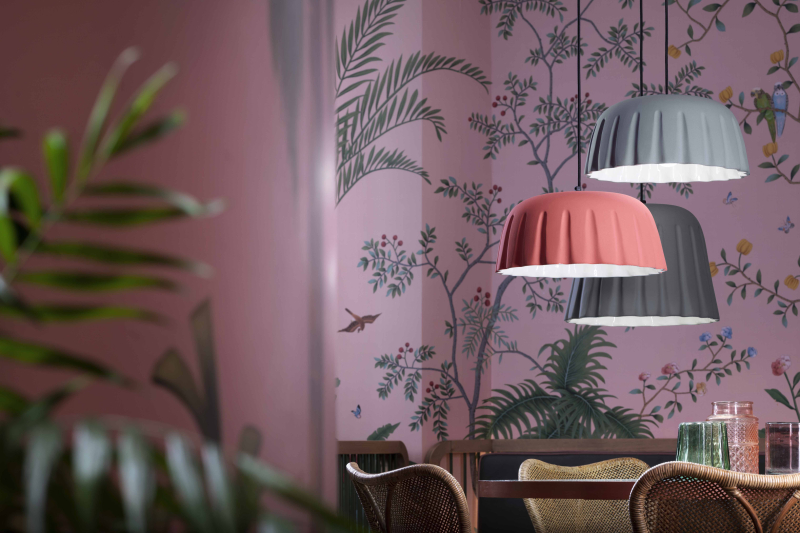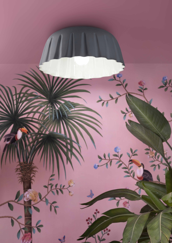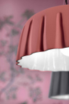 Difuzor Madame Grès s prefinjeno valovitimi površinami in ritmičnimi navpičnimi vložki, ki elegantno obdajajo celoten obod, deluje kot umetniška interpretacija tekstila v svetlobi. Namesto togosti izraža gibanje, mehkobo in brezčasno eleganco. Neprosojni engoba zaključki subtilno oplemenitijo njegove svilnate linije ter poudarijo izjemno kakovost izdelave. Oblika se nežno razpre okoli svetlobnega vira in ustvari bogat, širok svetlobni snop, ki prostor napolni s toplo, prefinjeno atmosfero. Na voljo v koralno roza, sivi, temno sivi in mat beli barvi.